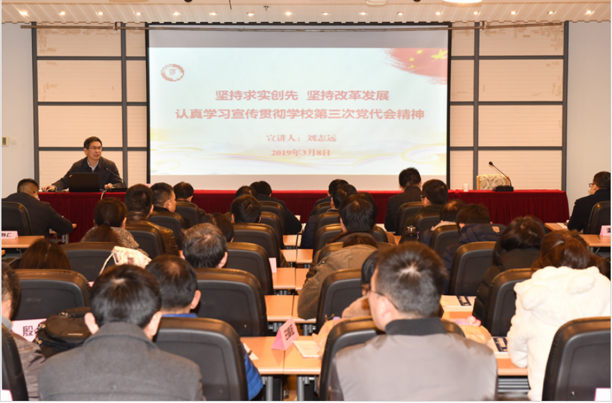 为深入学习贯彻学校第三次党代会精神,3月8日中午,校党委副书记刘志远在行政楼一楼学术报告厅为能源与动力工程学院全体教职工作了题为“坚持求实创先,坚持改革发展,认真学习宣传贯彻学校第三次党代会精神”的宣讲。会议由能源与动力工程学院党委书记张祚键主持。