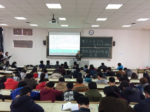 作为此次“世界水日”宣传周的一项重要活动,知识竞赛自开展以来,得到了师生的关注。经过为期5天的网络答题和线下竞答,共有10位同学脱颖而出,进入决赛。决赛采用学生喜闻乐见的“一站到底”形式,由一位选手作为攻擂方,选择比赛对手。而守擂方的选手有权利在组织方提供的大气污染、低碳行为、建筑节能、节水节电等环保题库中,选取自己所擅长的题目进行“一对一”的答题。答题双方你来我往,难分高下。经过激烈的角逐,能动151班王馨雨同学获得了冠军。比赛过程中还穿插了有趣的观众竞答环节,现场同学踊跃作答,气氛热烈。