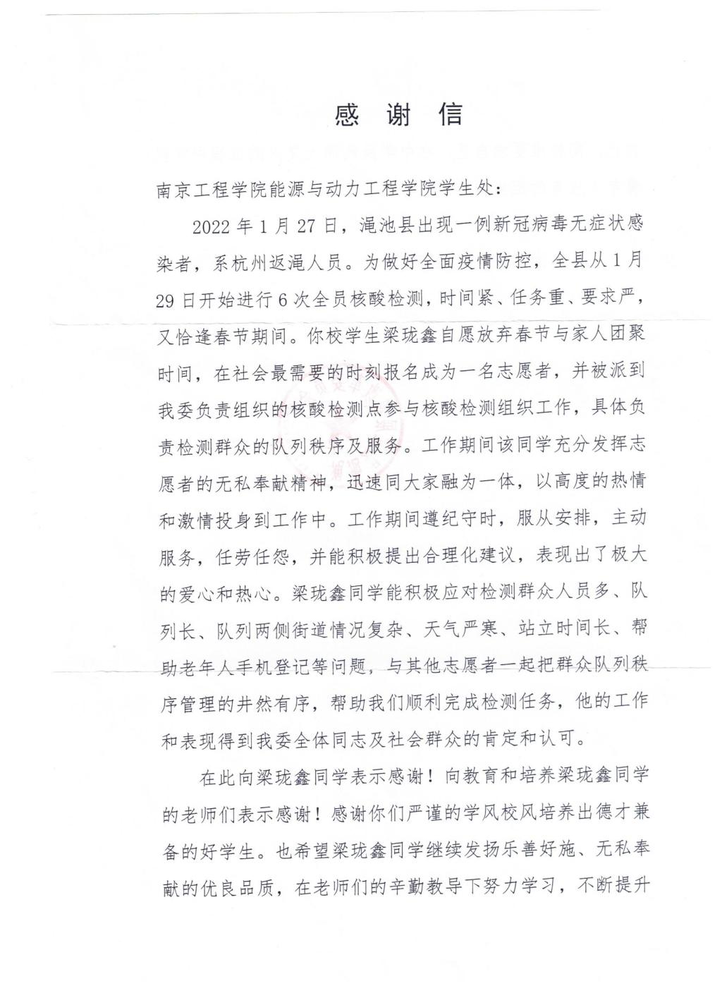 近日,能源与动力工程学院陆续收到渑池县发展和改革委员会、中共常村镇委员会、中共麻城经济开发区陡坡山社区总支委员会等地来自抗疫一线的感谢信,对我院学子积极参与疫情防控志愿服务活动表示感谢。