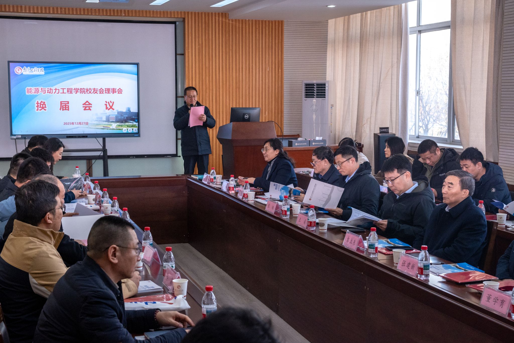 2025年12月27日,南京工程学院能源与动力工程学院校友会换届大会在学院三楼会议室举行。学院历任老领导、学校校友会领导、学院领导班子成员、校友代表及师生代表齐聚一堂,共同见证了这一重要时刻。大会由能源与动力工程学院副院长(主持工作)薛锐主持。