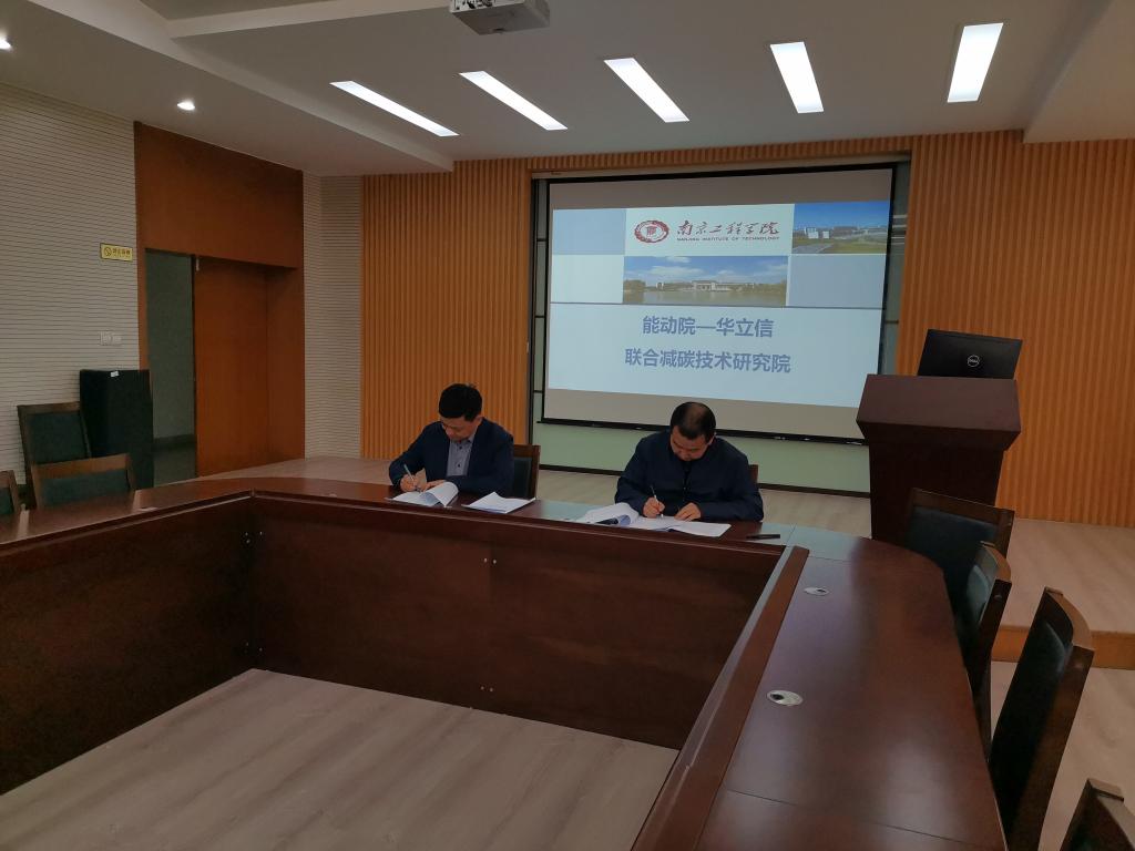 近日,江苏华立信通讯技术有限公司陈志兵董事长一行来我校考察交流,并与能源与动力工程学院正式签订“共建联合减碳技术研究院”合作协议。该院梁绍华院长、张东亮副院长接待了来宾。
