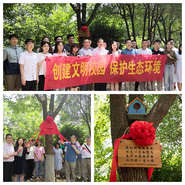 “保护生态环境,人人有责。我们虽然即将毕业,但是也想尽一份力,发一份光,助力学校的生态文明建设和文明校园创建,祝愿学校花更红,草更绿,水更清。”在离校之际,能源与动力工程学院2017级毕业生们自发联合起来向母校捐赠17个木制鸟窝,以实际行动保护校园环境,构筑南工程精神,汇聚南工程力量。